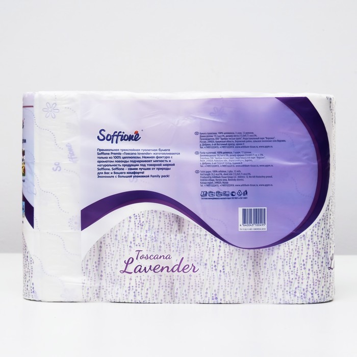 Трехслойная туалетная бумага Soffione Premio Toscana Lavander обладает ненавязчивым ароматом лаванды и светло-фиолетовым оттенком тиснения.