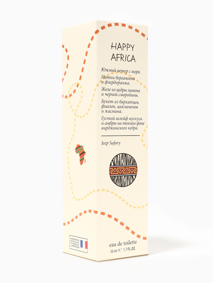Флакон объёмом 50 мл удобно носить с собой, чтобы освежить аромат в течение дня. Happy Africa подходит для прогулок, встреч с друзьями или любых повседневных моментов, когда хочется чувствовать себя яркой и уверенной.