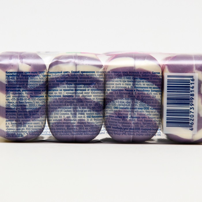 Туалетное косметическое мыло EXXE 1+1 "Лавандовый цвет" - это набор из четырех красиво ароматизированных мыл, созданных, чтобы обеспечить приятное и эффективное очищение кожи. Каждое мыло весит 75 г и обладает следующими характеристиками: