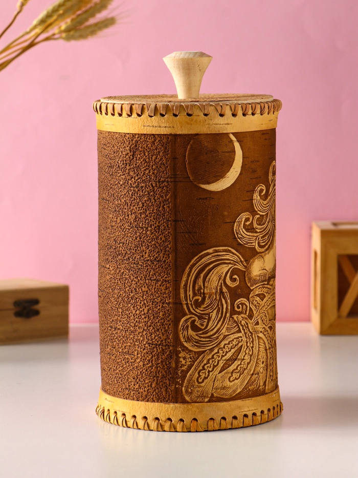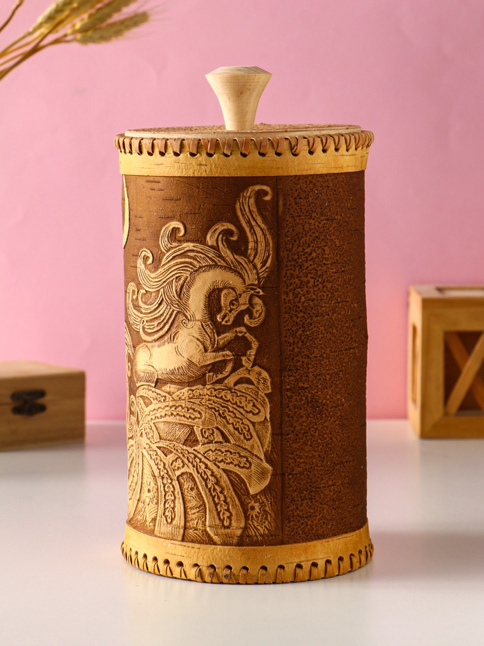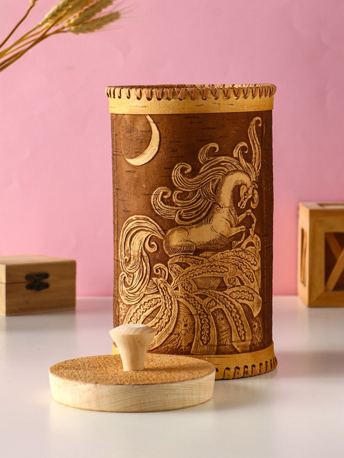 Туес большой "Конек-Горбунок", D13 смхH(с хватком)27,5 см, береста