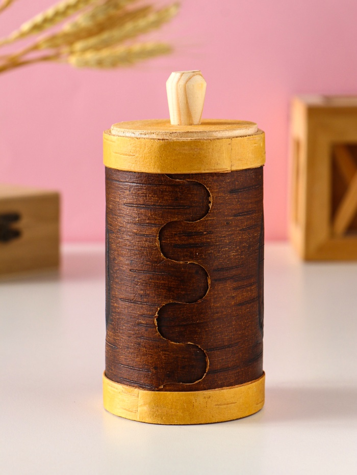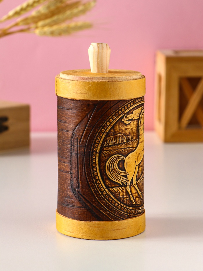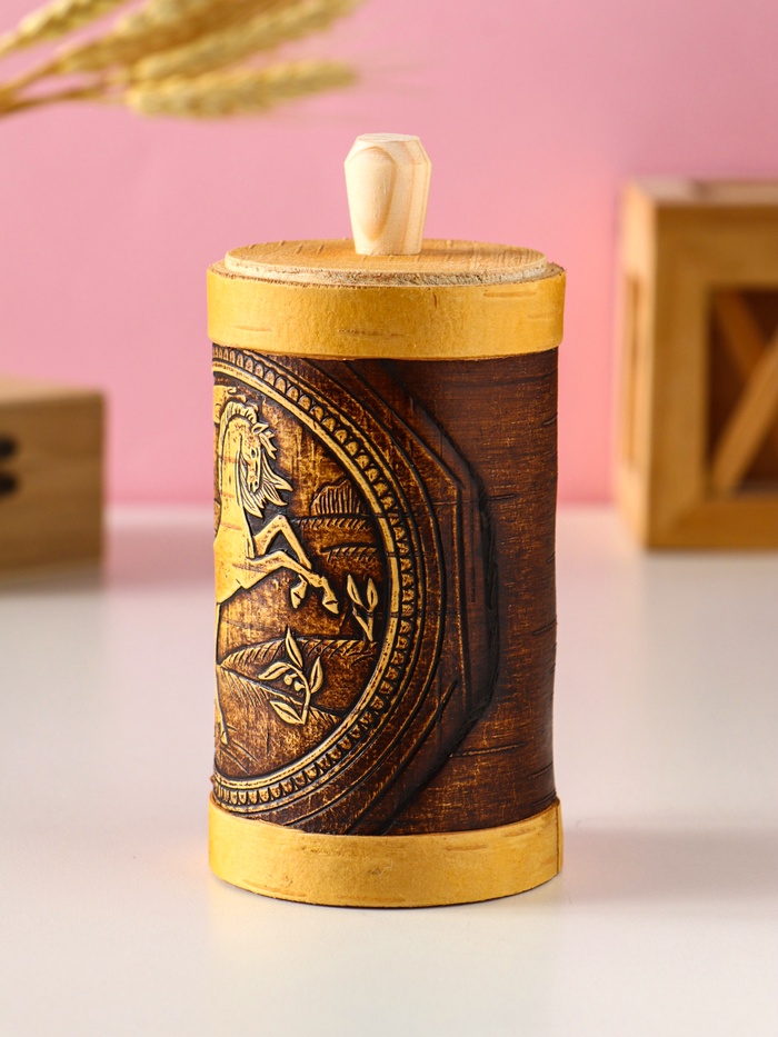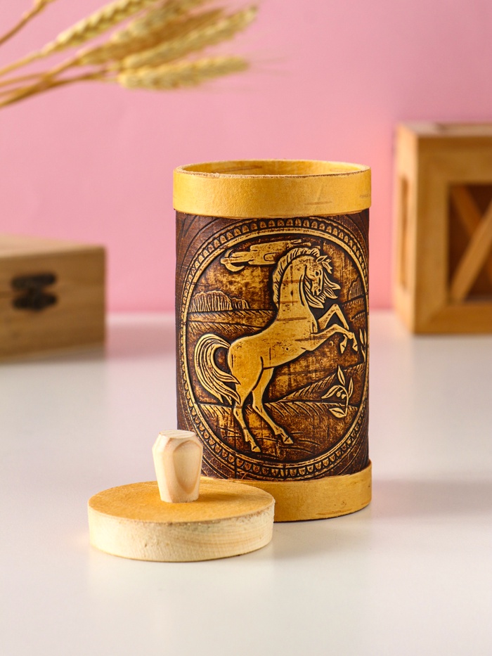 Туес Д6 высокий " Конь вороной",d6см, высота с хватком 12см, береста