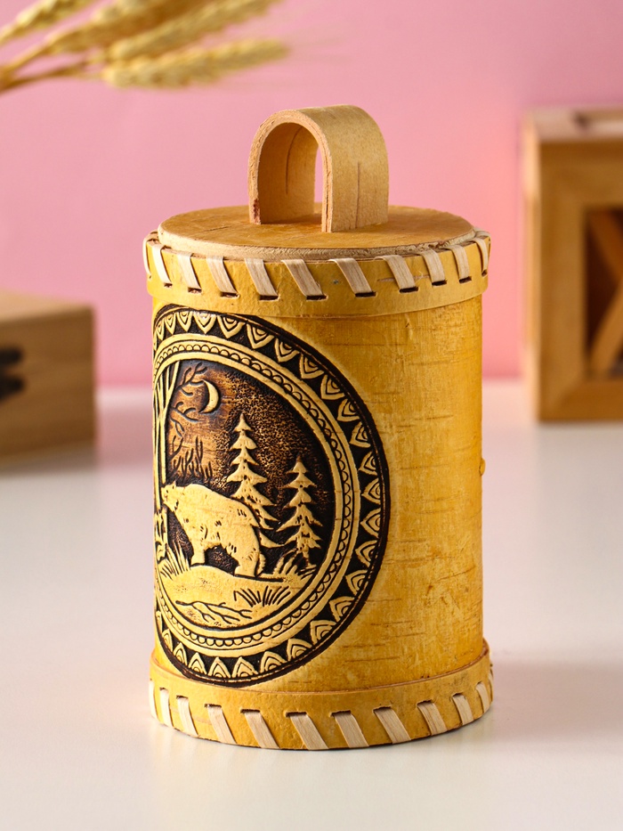 Туес "Лесной" (Медведь), D8,5 смхH(с хватком)14,5 см, береста