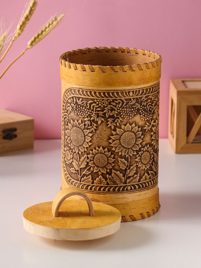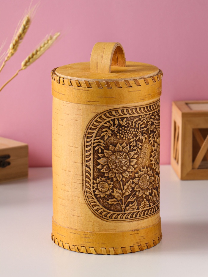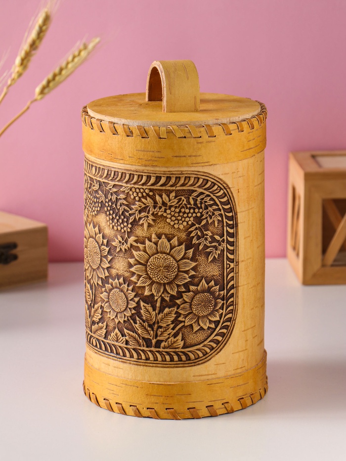 Туес «Подсолнухи», 12х17см береста