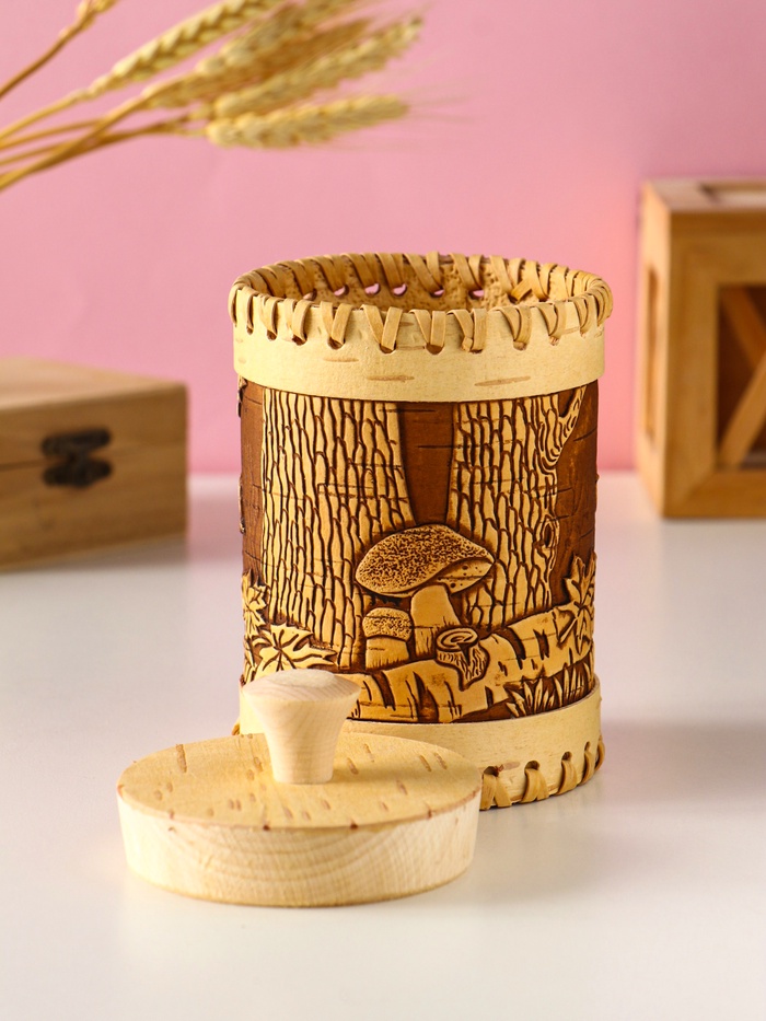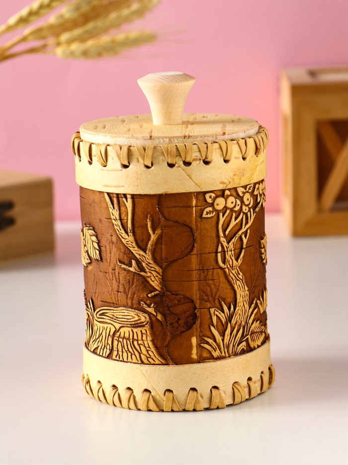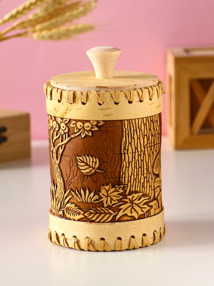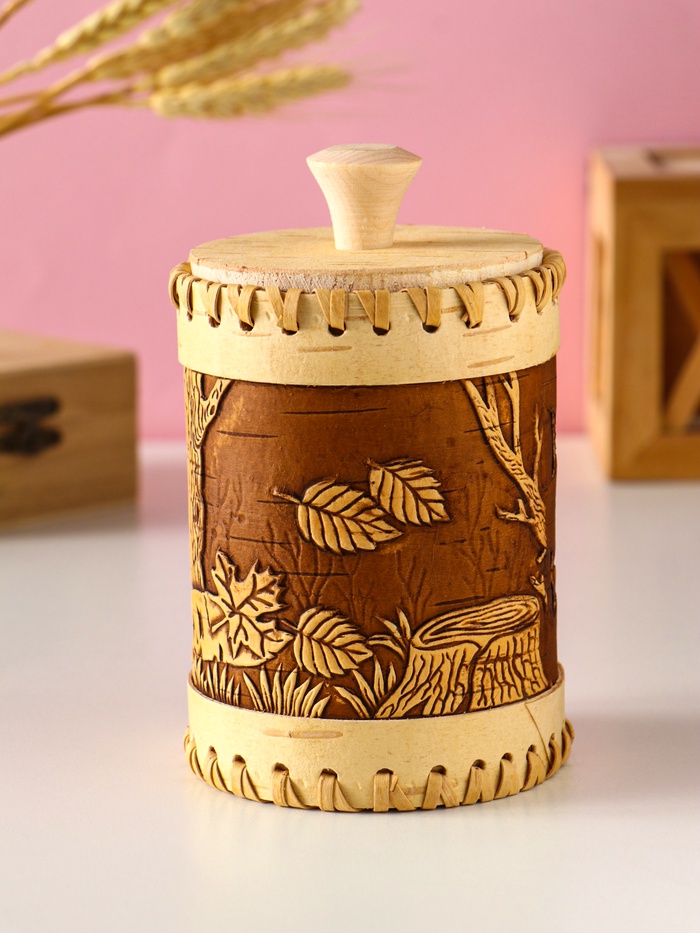 Туес шитый "Шишки" , D8смхH(с хватком)14см, береста