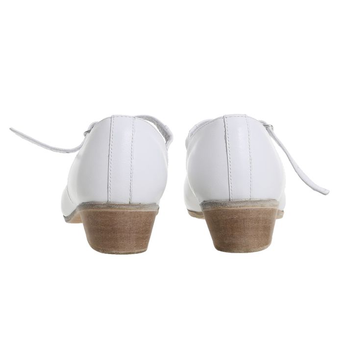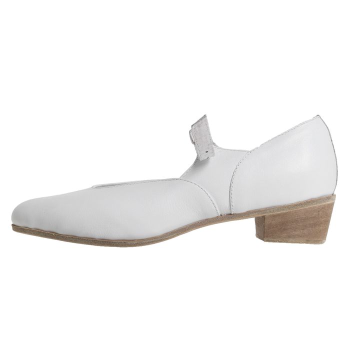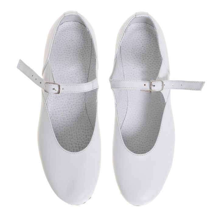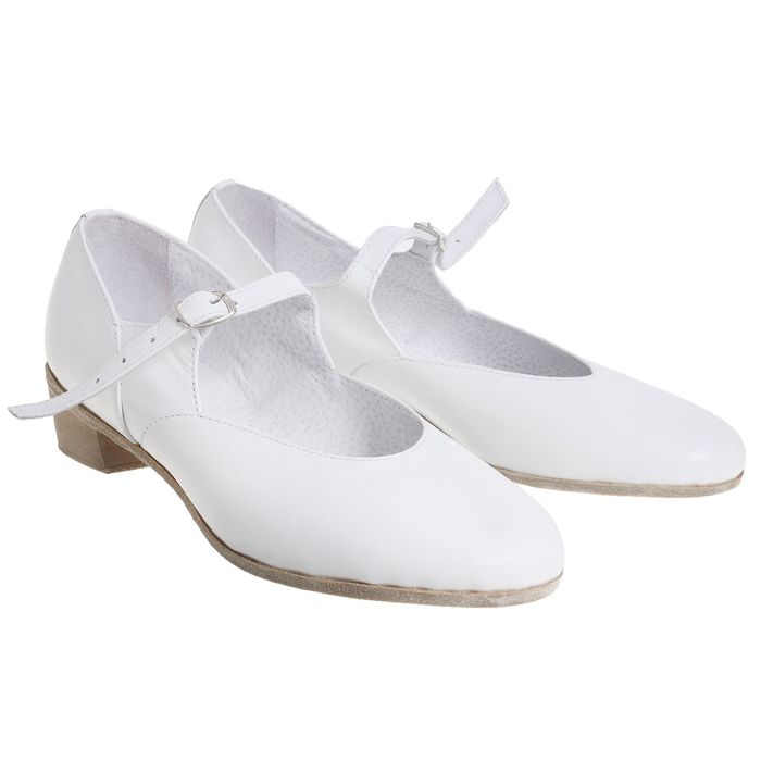 Туфли подходят для занятий народными танцами. Натуральный материал позволяет ноге дышать. Застёжка с пряжкой регулирует посадку изделия.
