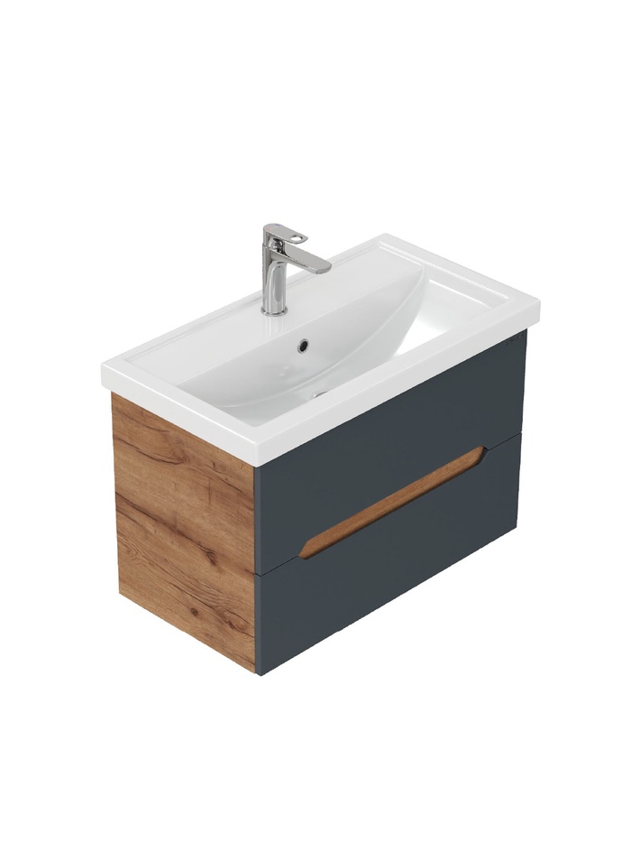 Тумба Айленд 70 подвесная, графит/дуб крафт золотой раковина Фостер-70 Кirovit