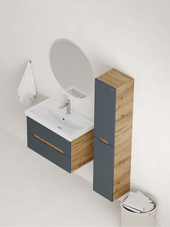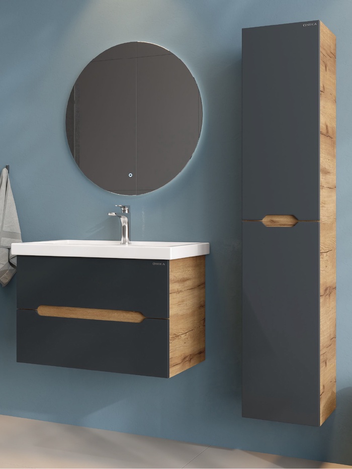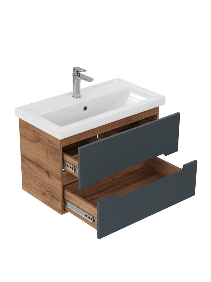 Тумба Айленд 80 подвесная, графит/дуб крафт золотой раковина Фостер 80 Kirovit