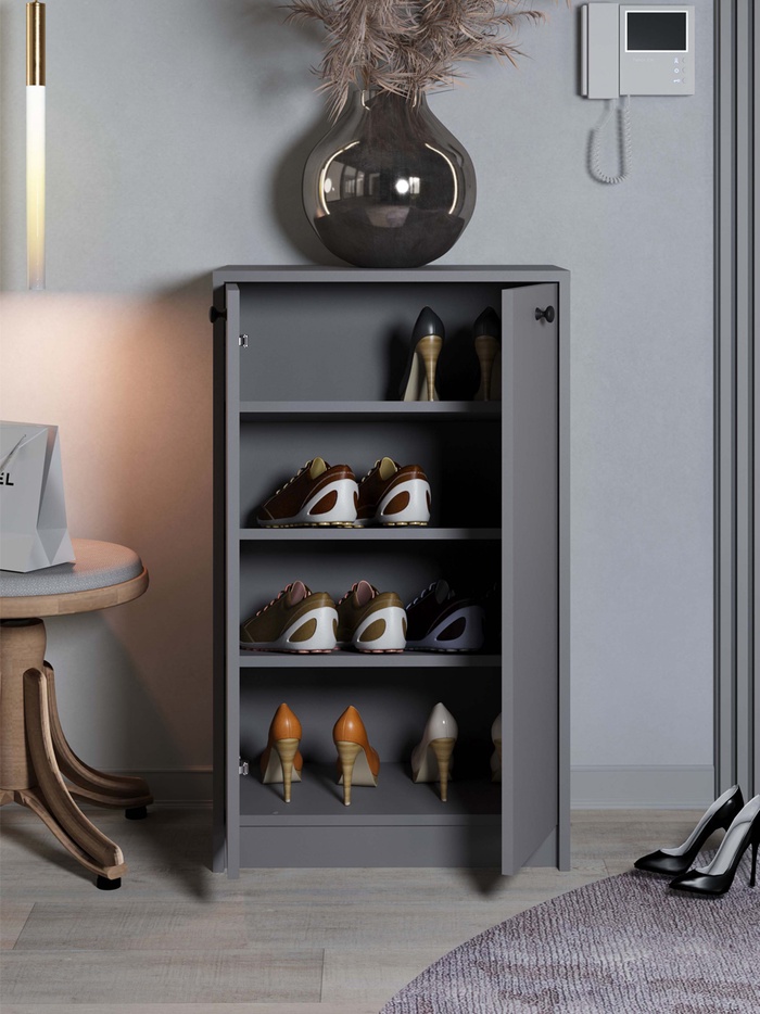 - Просторное хранение: высота тумбы обеспечивает достаточно места для размещения большого количества обуви, что особенно удобно для семей с несколькими членами.