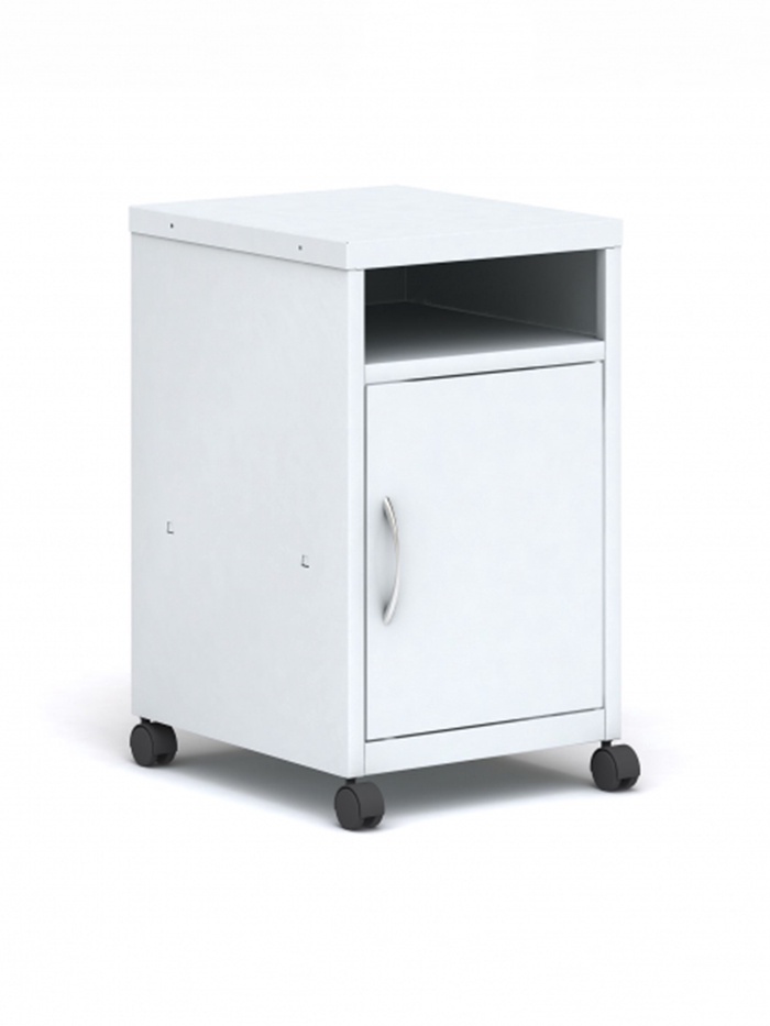 Медицинская тумба ТП-2 оснащена вместительным отделением с полкой, которое закрыто дверкой с хромированной ручкой. Над отделением открытая ниша, в которую можно класть любые предметы.
