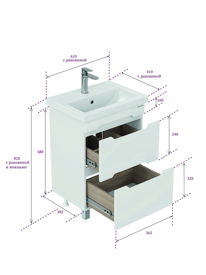 Тумба напольная Onika Айленд 60 белая раковина Фостер-60 Кirovit