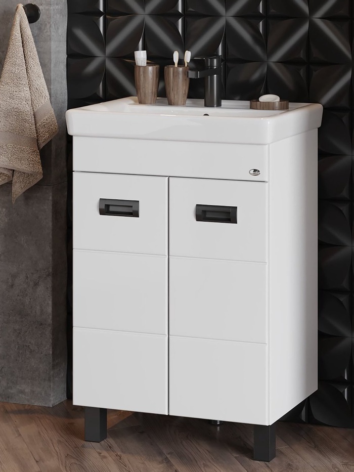 Тумба напольная, Onika Балтика-Квадро Black 60 раковина Тигода-60 Santek