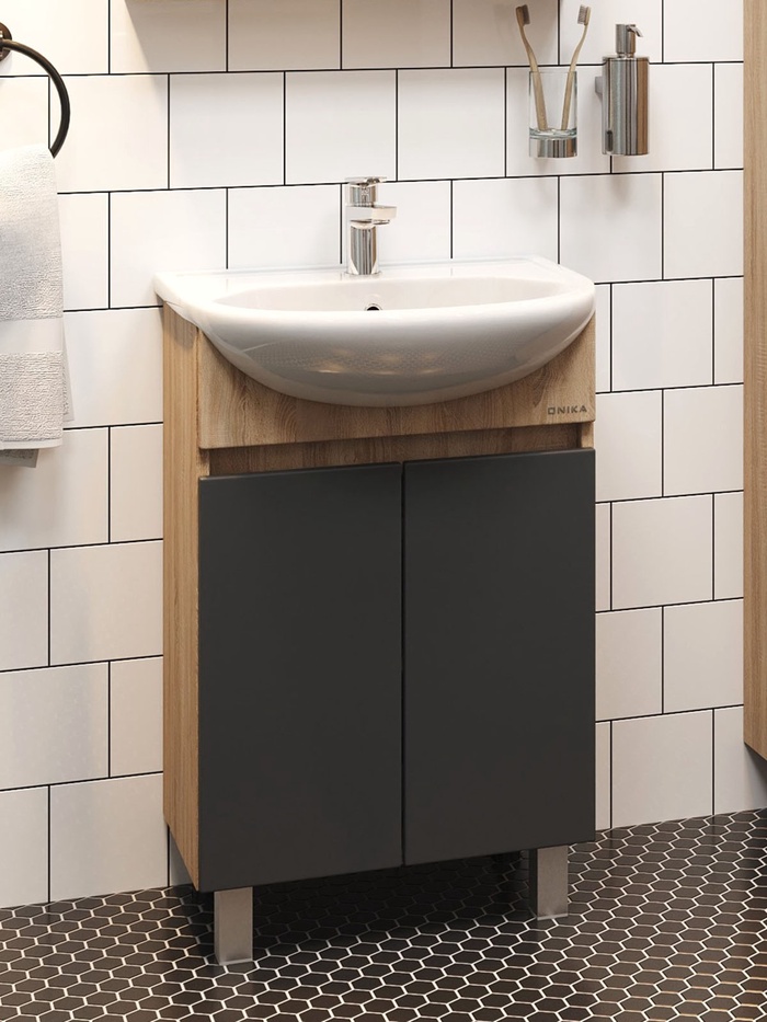 Тумба напольная Onika Милтон 55 серая/дуб сонома раковину Уют-55 Rosa