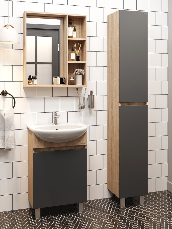Тумба напольная Onika Милтон 50 серая/дуб сонома раковину Уют-50 Rosa