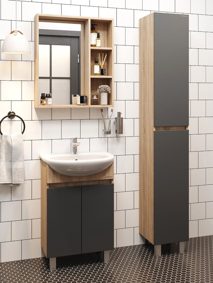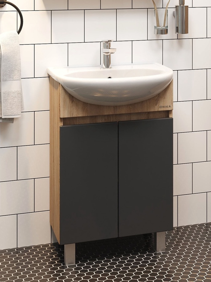 Тумба напольная Onika Милтон 55 серая/дуб сонома раковину Уют-55 Rosa