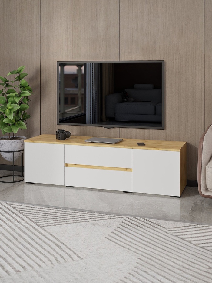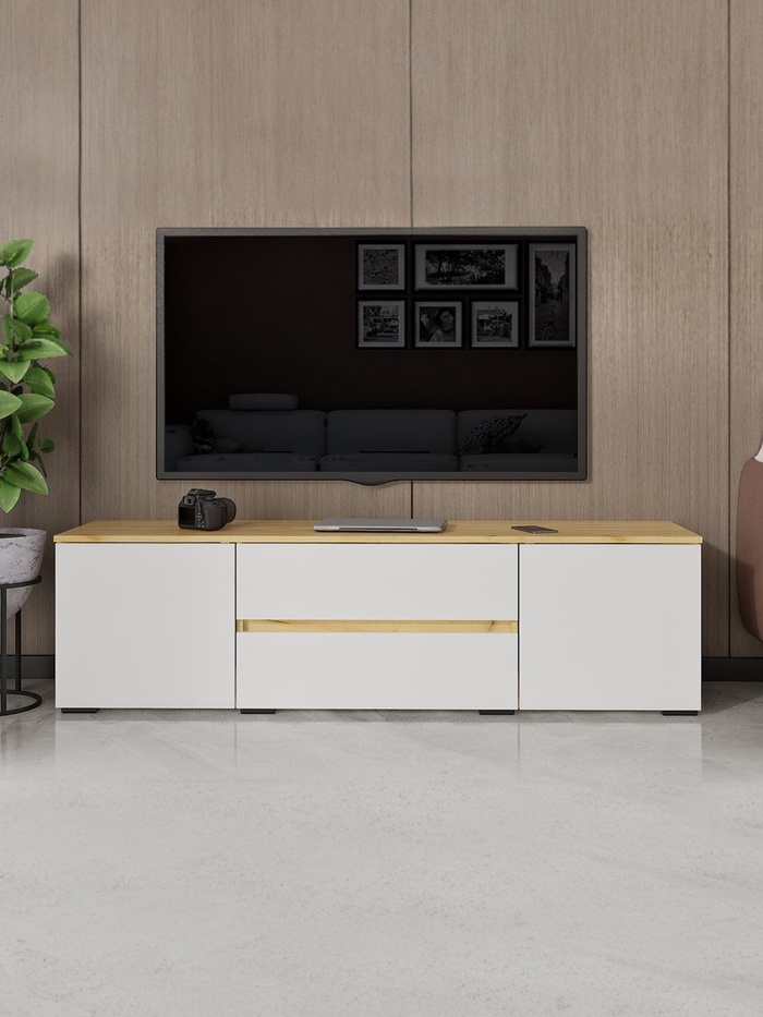 - Просторные ящики: два вместительных выдвижных ящика и две ниши с дверцами, обеспечат хранение дисков, пультов дистанционного управления и других мелких бытовых приборов.