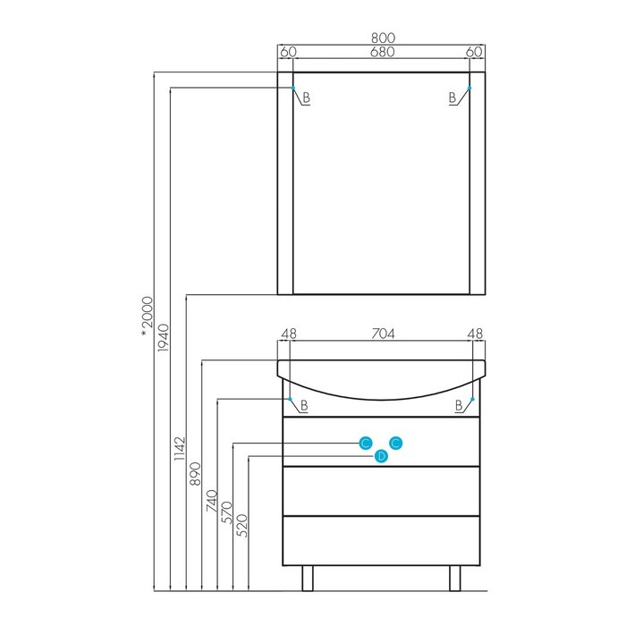 - Размер тумбы (Ш × В × Г): 760 × 833 × 309 мм.