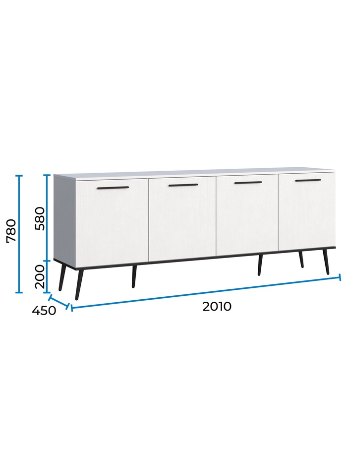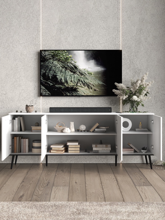 Тумба под ТВ Монти, 2010х450х780, Белый текстурный