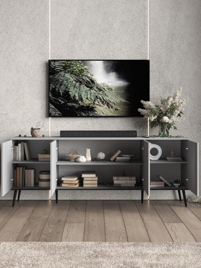Тумба под ТВ Монти, 2010х450х780, Шиншилла серая
