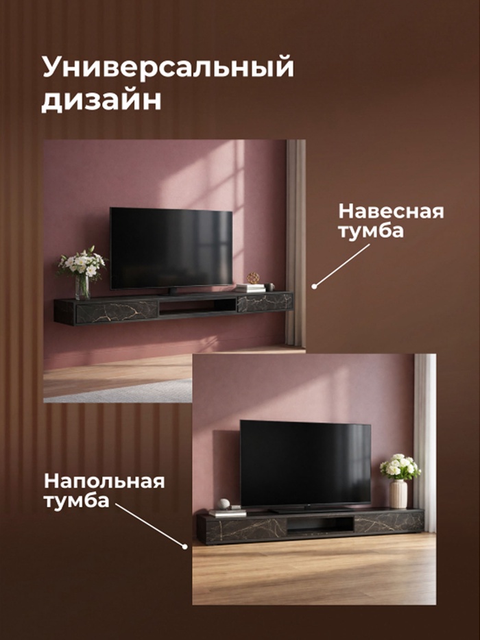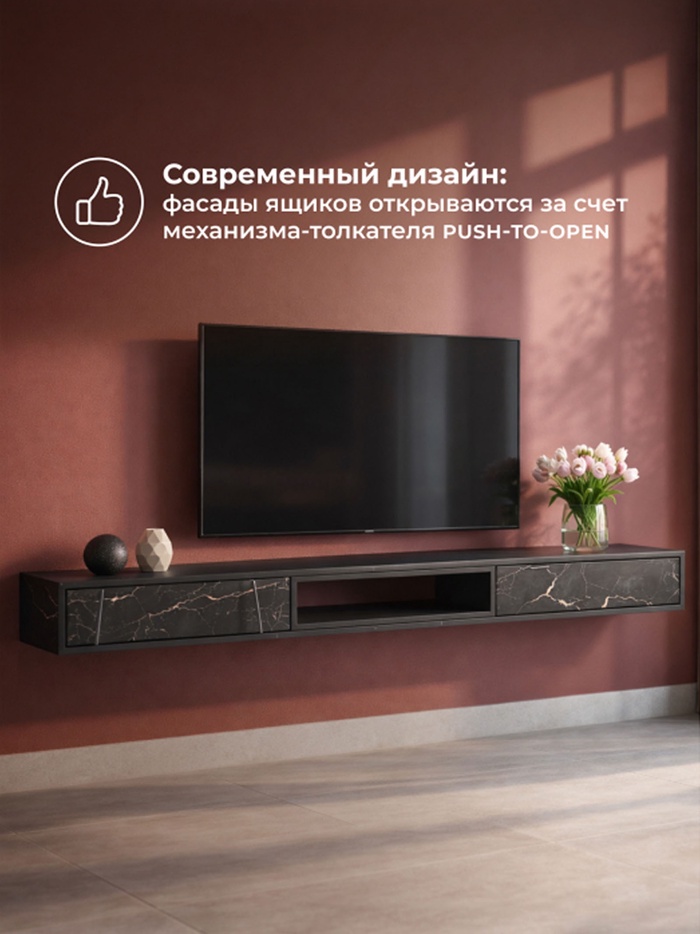 Тумба под ТВ подвесная «Делора 2,0 м», 2002×315×160 мм, цвет файерстоун / черный