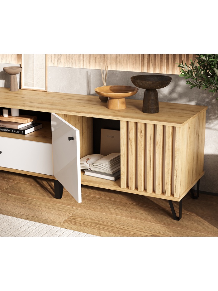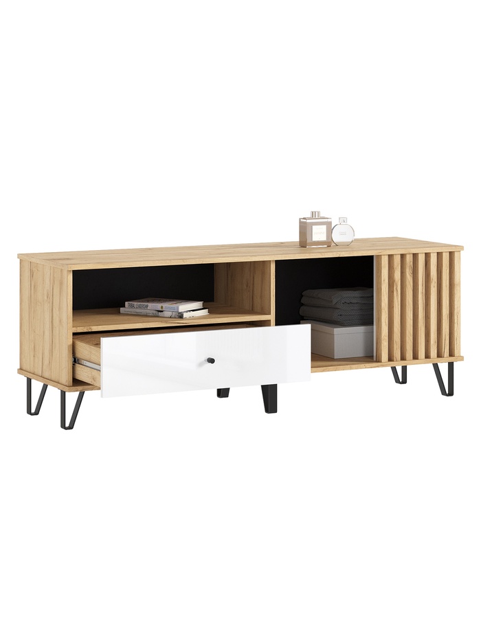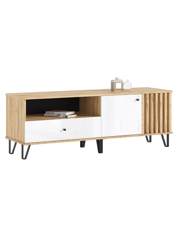 Тумба под ТВ «Роджина», 1502×426×511 мм, цвет белый глянец/дуб крафт