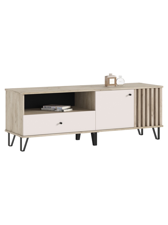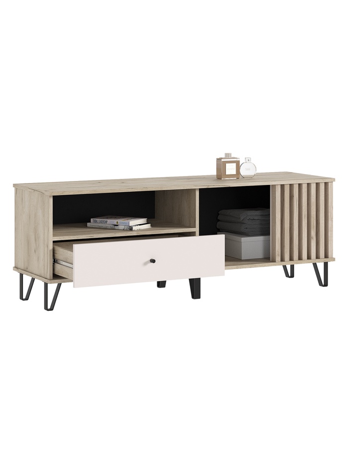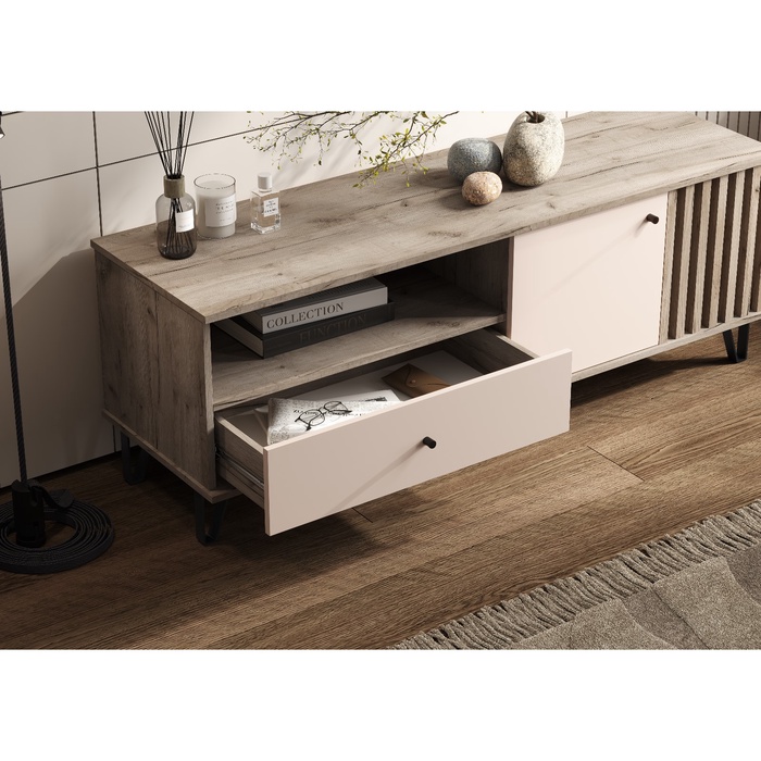 Тумба под ТВ «Роджина», 1502×426×511 мм, цвет кашемир/дуб крафт серый