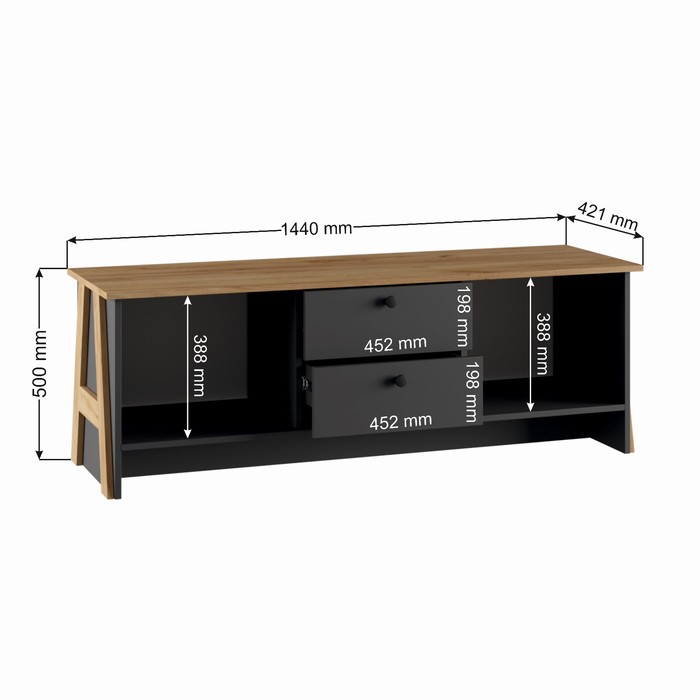 - Оснащен двумя выдвижными ящиками, и двумя ящиками со створчатыми дверцами.