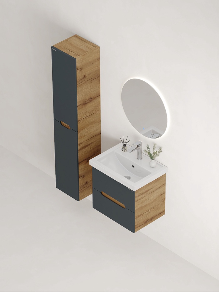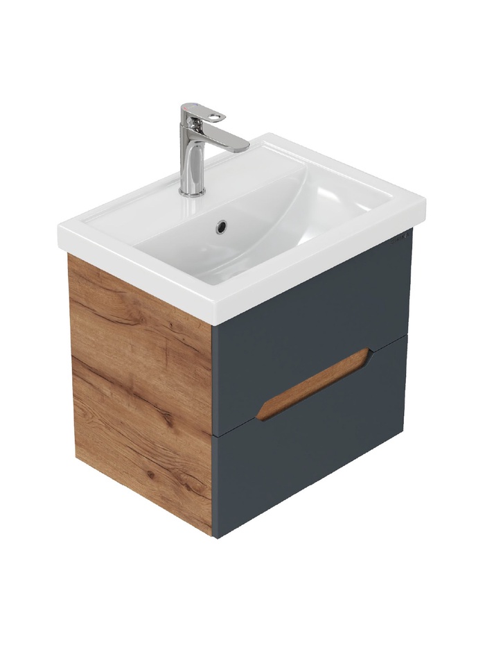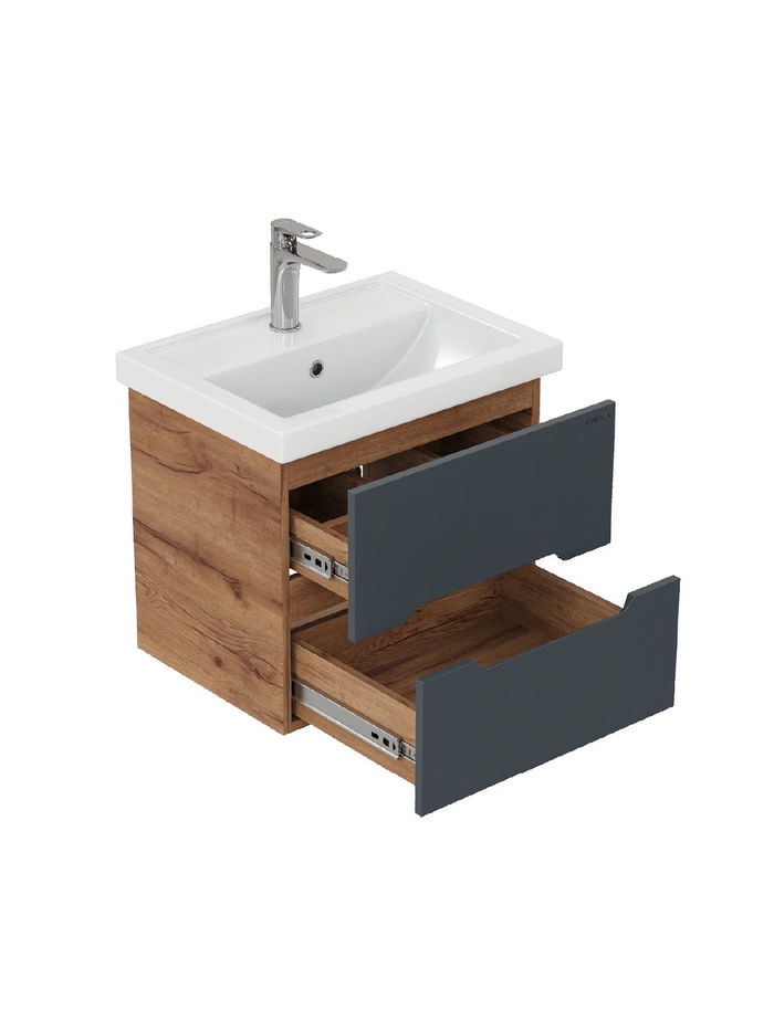 Тумба подвесная Айленд 50 графит/дуб крафт золотой, раковина Фостер-50 Кirovit