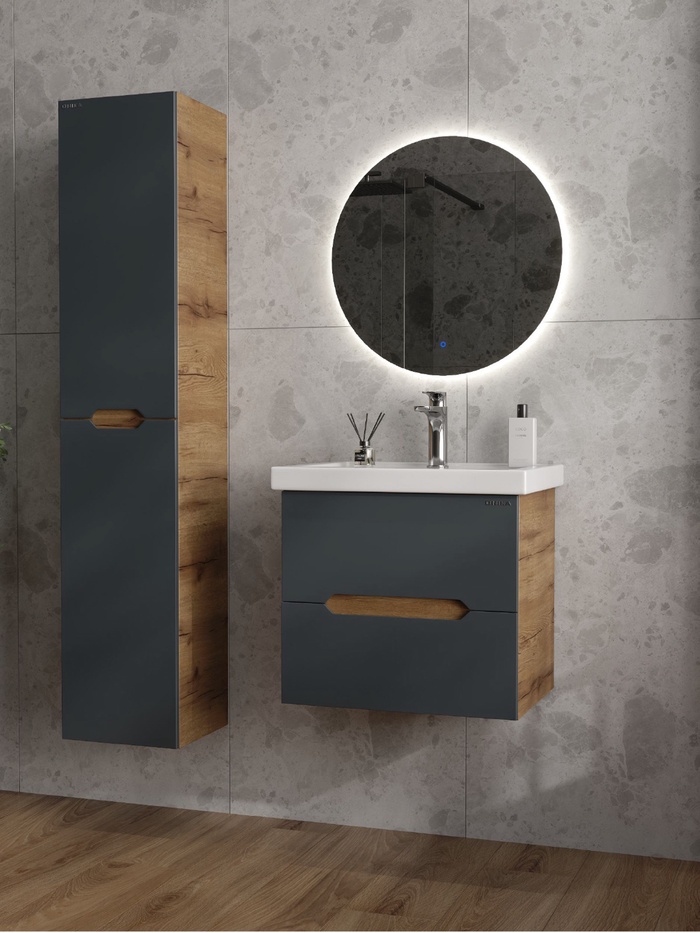 Тумба подвесная Айленд 60 графит/дуб крафт золотой, раковина Фостер-60 Кirovit