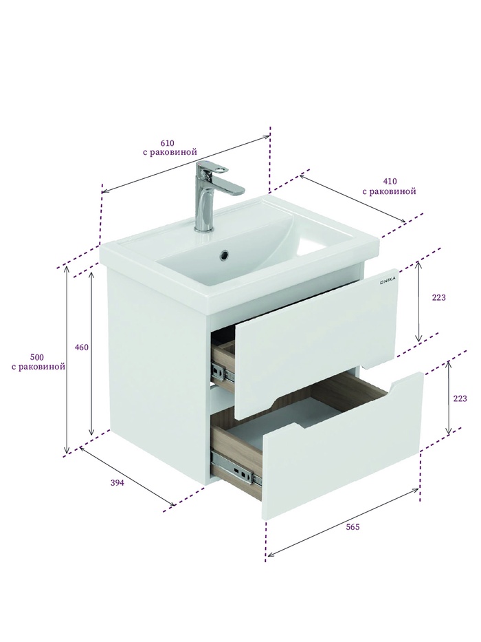 Тумба подвесная Onika Айленд 60 белая раковина Фостер-60 Кirovit
