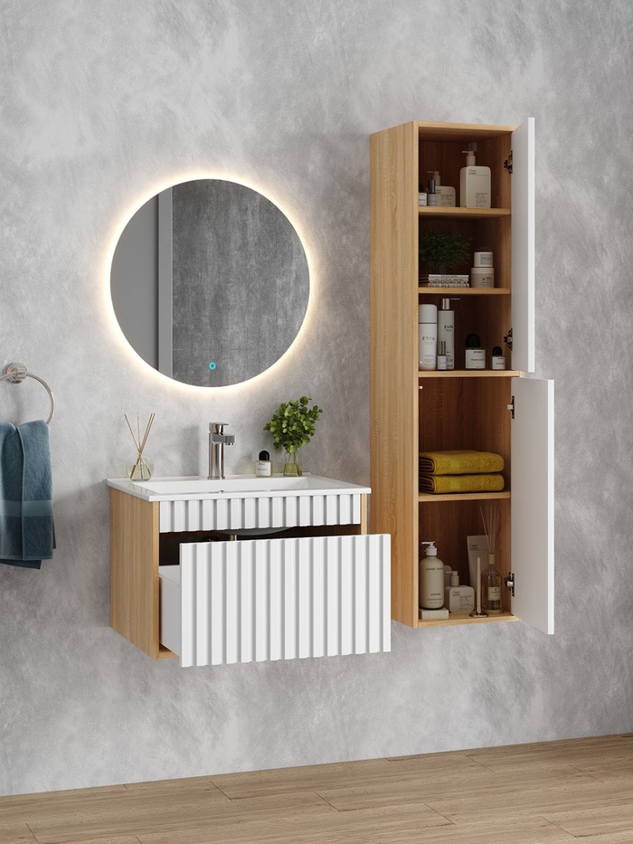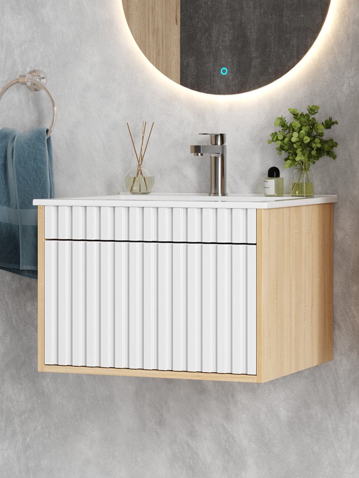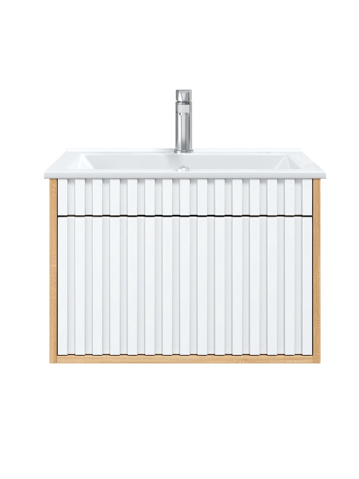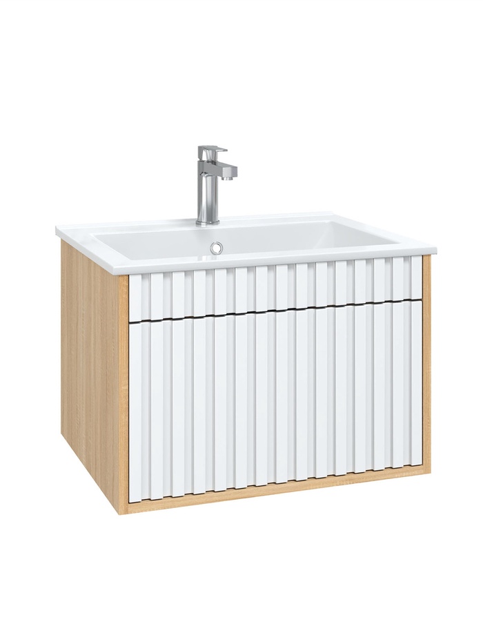 Тумба подвесная Onika Дайлер 60 белая/дуб сонома раковину Бергамо Нова 60 Керамин