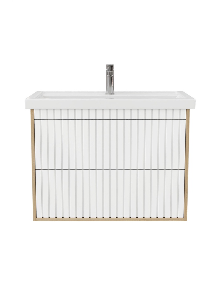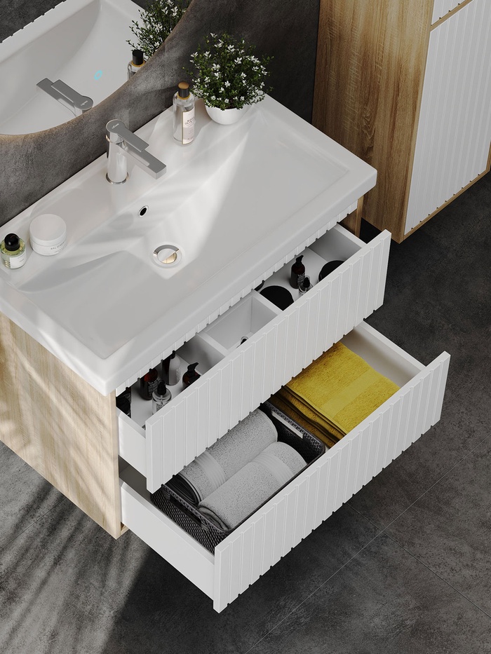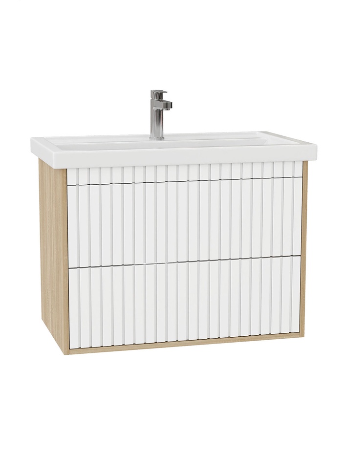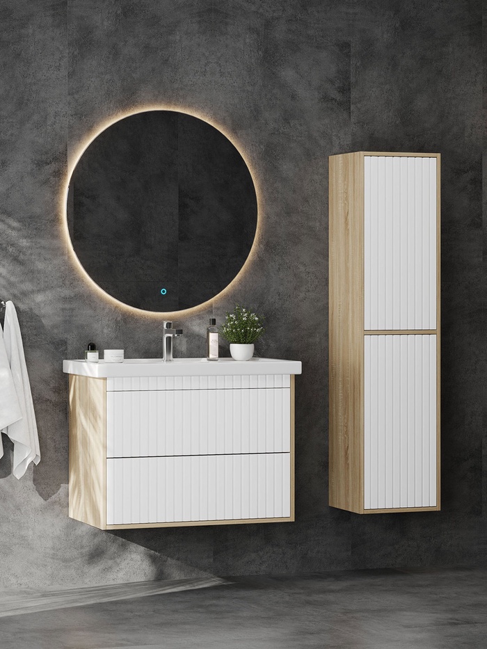 Тумба подвесная Onika Дайлер 80 белая/дуб сонома раковину Фостер 80 Kirovit