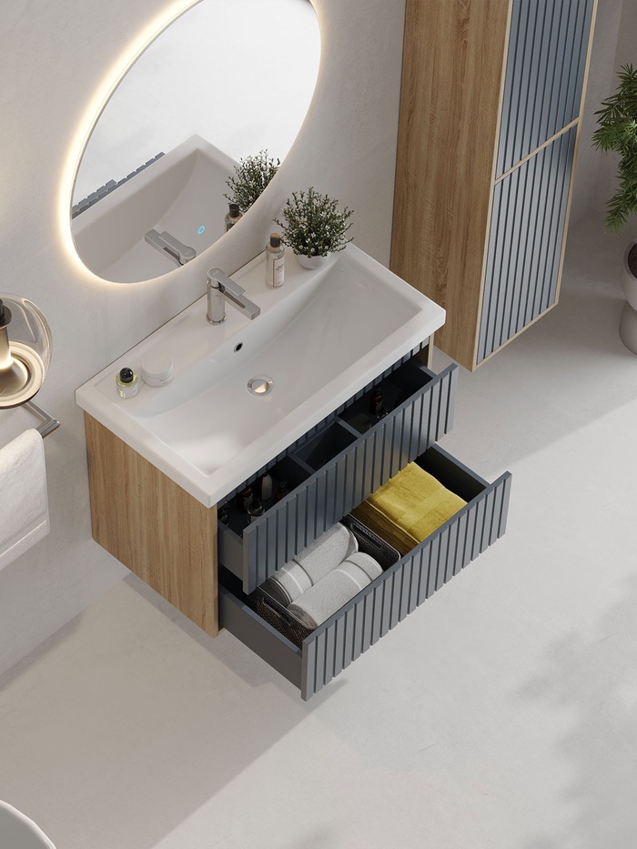 Тумба подвесная Onika Дайлер 80 графит/дуб сонома раковину Фостер 80 Kirovit