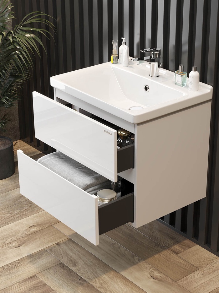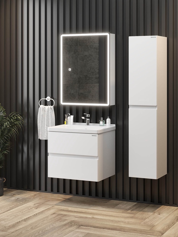 Тумба подвесная Onika Эвада 60 белая раковина Миранда-60 Santek