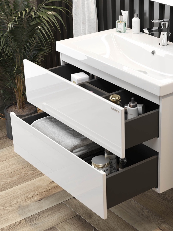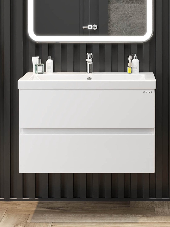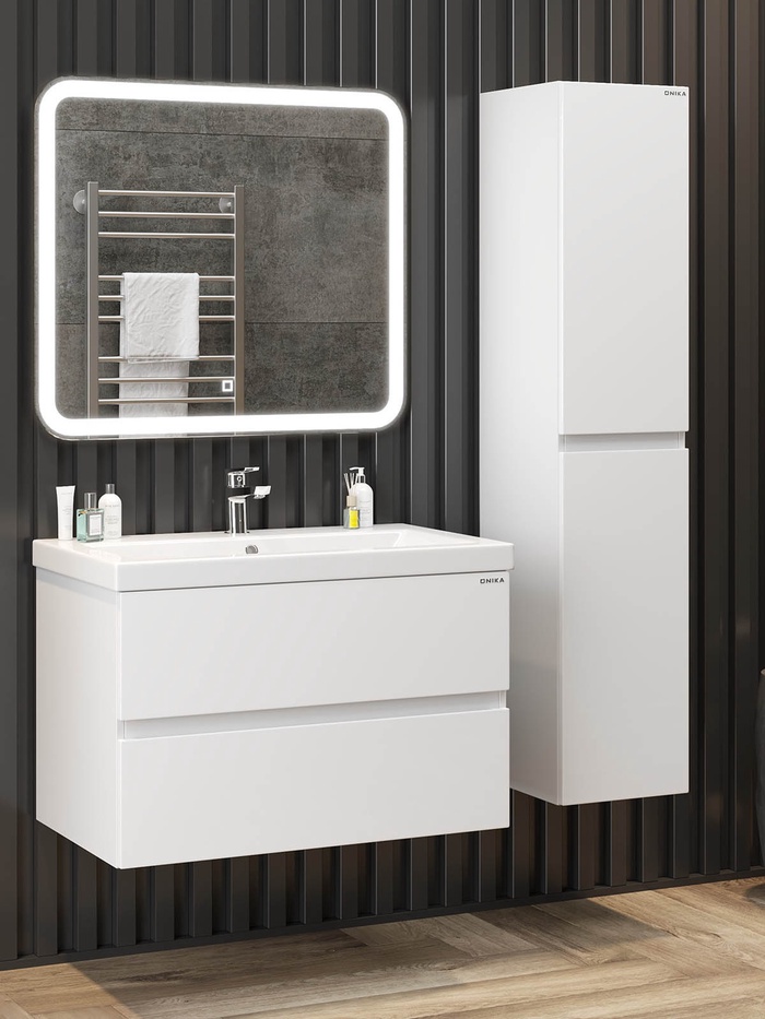 Тумба подвесная Onika Эвада 80 белая раковина Миранда-80 Santek