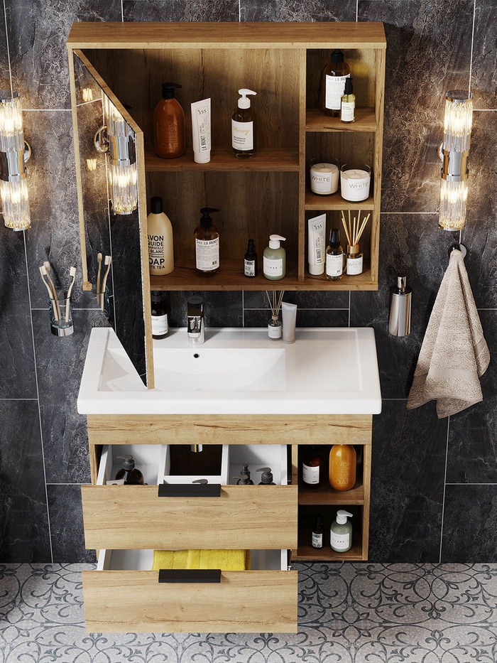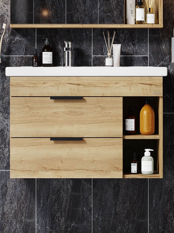 Тумба подвесная Onika Легран 80 дуб галифакс раковина Фостер-80 правый Кirovit