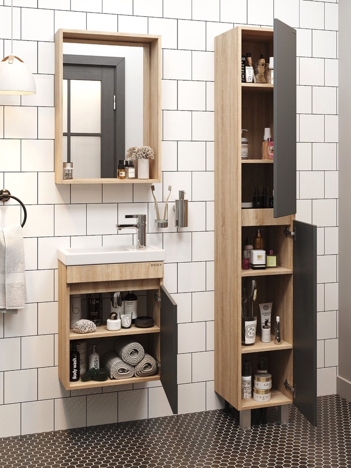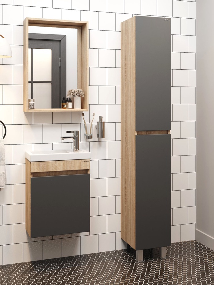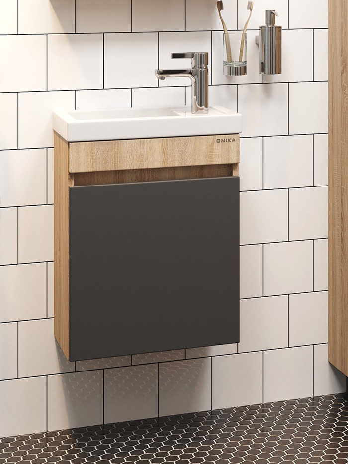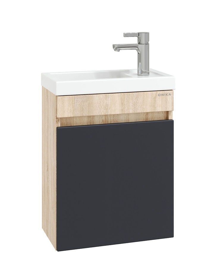 Тумба подвесная, Onika Милтон 45 серая/дуб сонома раковина Фостер-45 Кirovit