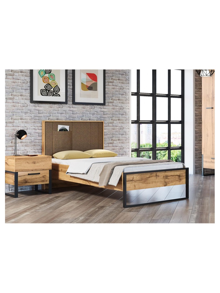 Тумба прикроватная Iris металл дуб вотан / черный муар