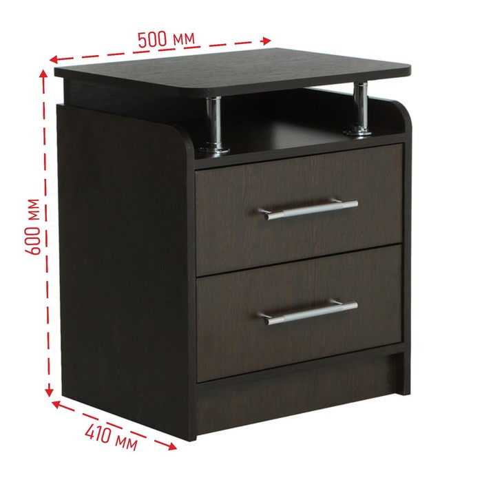- Оснащен двумя выдвижными ящиками и двумя полочками.
