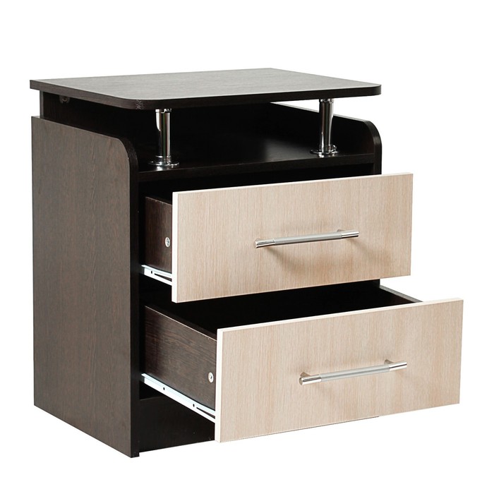- Оснащен двумя выдвижными ящиками и двумя полочками.
