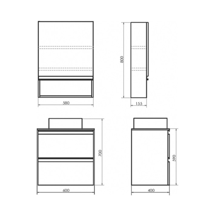 Тумба-умывальник в современном стиле с двумя глубокими ящиками. Она укомплектована чёрными матовыми ручками и системой плавного закрывания ящика. Тумба предусмотрена для подключения водоснабжения снизу.