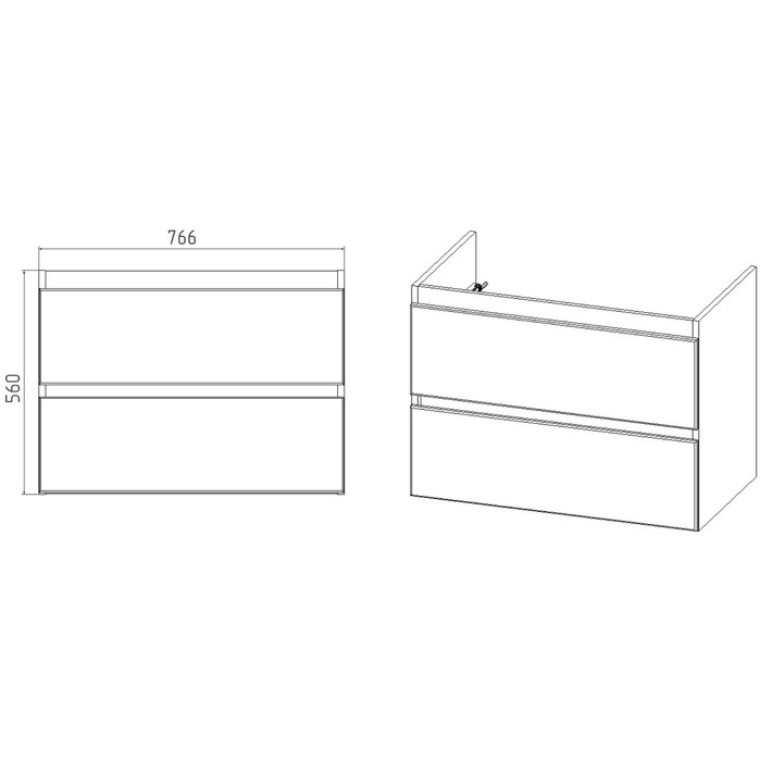 Тумба VIANT «Мальта» 2 ящика, подвесная, 425х760х560 мм, с раковиной COMO 80