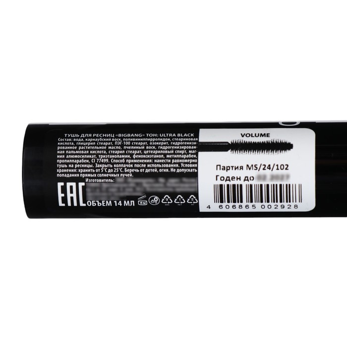 Способ применения: наносите тушь с помощью силиконовой кисти, начиная от корней ресниц и продвигаясь к кончикам. Для большего объема можно нанести второй слой. Рекомендуется использовать тушь на очищенных ресницах для лучшего результата.