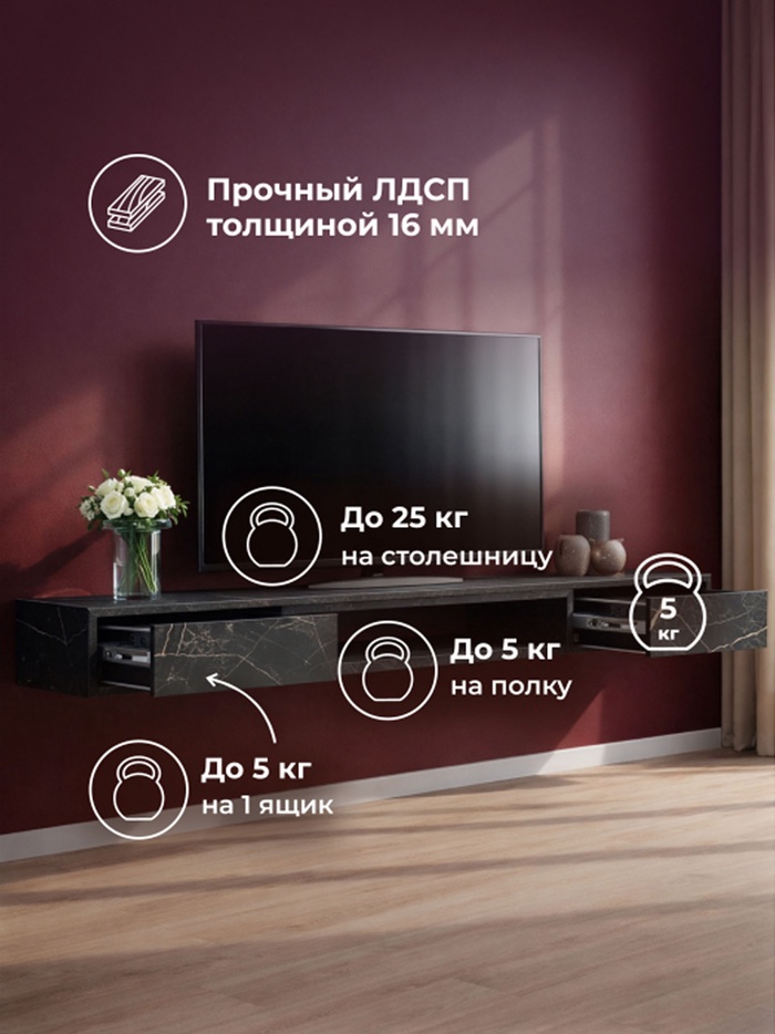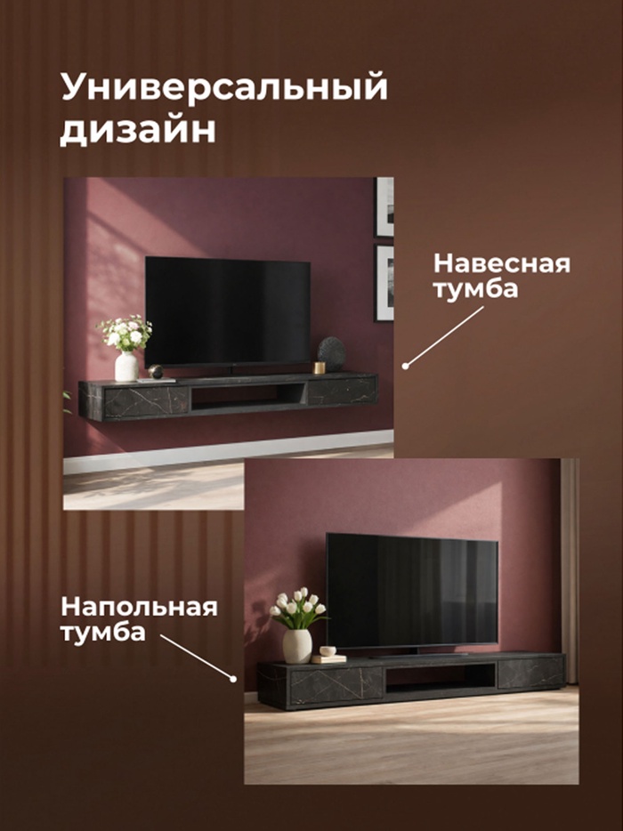 ТВ-тумба Делора 1,6 м файерстоун / черный