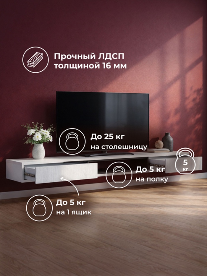 ТВ-тумба Делора 1,8 м оникс / файерстоун