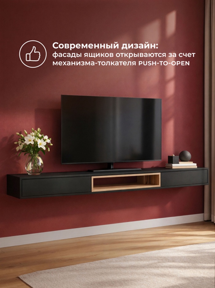 ТВ-тумба Делора 1,8 м черный / дуб вотан
