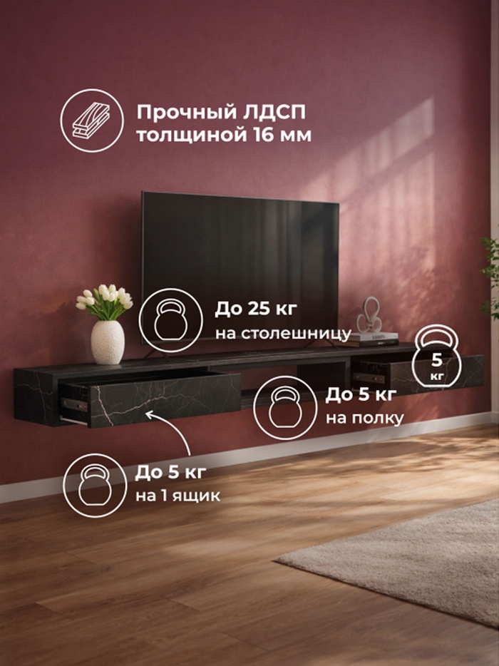 ТВ-тумба Делора 1,8 м файерстоун / черный