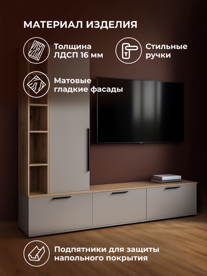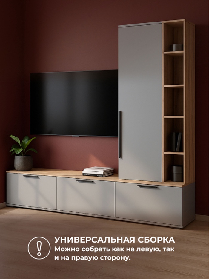 ТВ-тумба Филеста шиншилла серая / дуб вотан