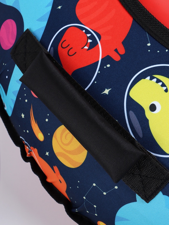 Дно тюбинга изготовлено из тентовой ткани плотностью 600 г/м², что гарантирует долгий срок службы и обеспечивает отличное скольжение. Снаряд оснащён безопасными ручками. Для тюбинга подойдёт камера 14 дюймов. Предназначен для детей от 12 лет.