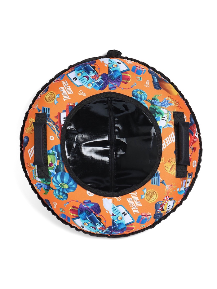 Требования по безопасности: запрещается кататься с трамплинов, по поверхностям с камнями или препятствиями, привязывать тюбинг к транспортным средствам, использовать его на других покрытиях, кроме снежных. Не предназначен для детей младше 3 лет.