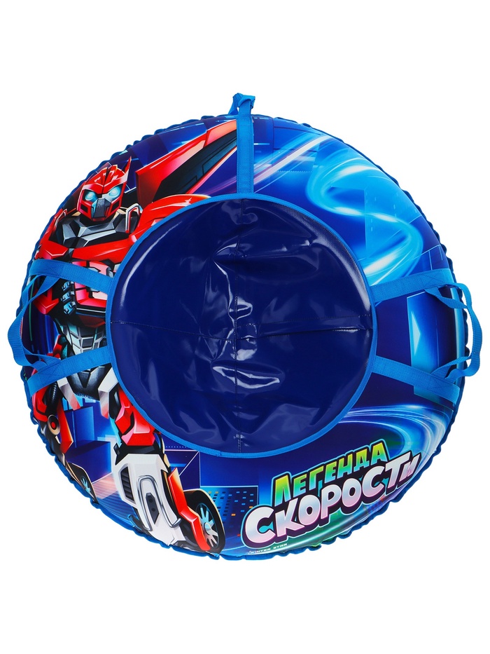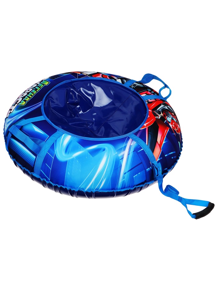 Дно тюбинга изготовлено из тентовой ткани плотностью 550–650 г/м², что гарантирует долгий срок службы и обеспечивает отличное скольжение. Снаряд оснащён безопасными ручками и молнией для быстрого доступа к камере. Имеет закрытую сердцевину, что исключает попадание снега внутрь. Для тюбинга подойдёт камера 14 дюймов. Предназначен для детей от 3 лет.